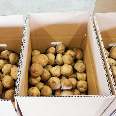 区画共同購入では、オーナー畑で収穫したじゃがいもを無選別で箱詰めしています。