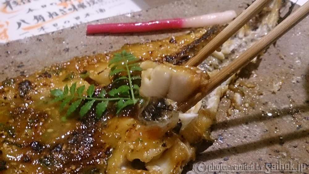 八角というと、希少で水揚げ自体も少ない魚なので大きさは小ぶりで正直食べるところが無いようなものも多くあるのですが、この八角はまさにホッケ級。目の前で焼いた熱々の身をとると肉厚でプリプリ!そして脂のりも良くホクホクです。