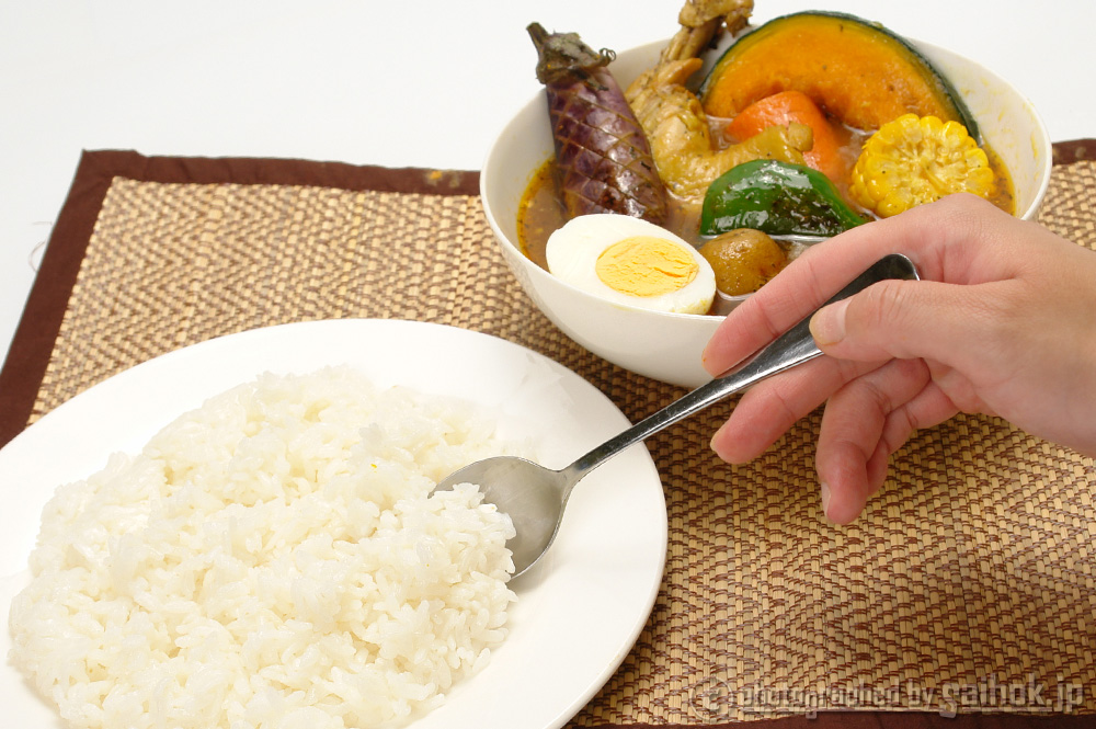 熱々のスープカレーと白いごはんをぜひご賞味ください♪