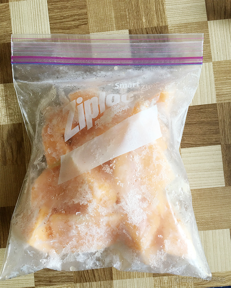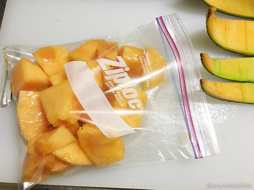 冷凍方法は簡単で、お好きな大きさにカットしたメロンを袋に入れてそのまま冷凍するだけです。