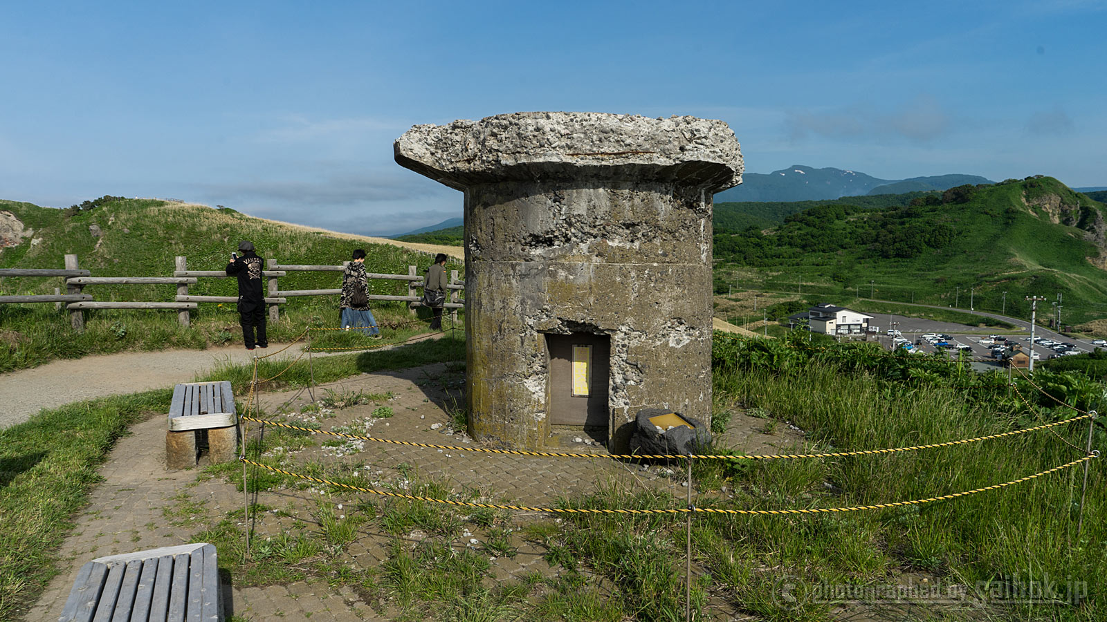 神威岬の中間ほどには、1942年(昭和17年)に設置されたレーダー(おもにロシアの船や飛行機を見つけるためのもの)跡がまだありました。ここから当時はどんな景色を見ていたんでしょうね。