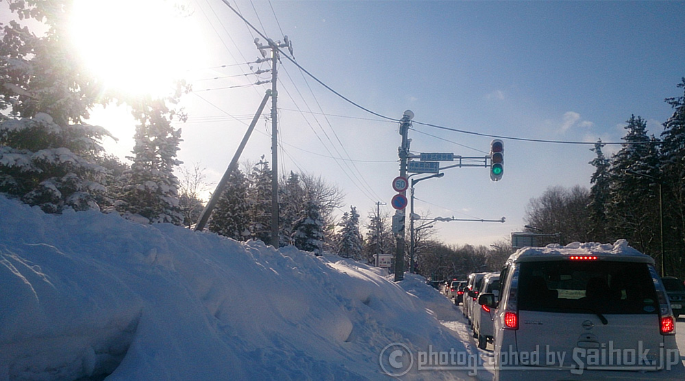 ところが初詣に引き続きやはり、車は混んでいてなかなか進まず結構待ちました。しかも前日に雪が降ったので、歩道側にはどっさり雪が積もっています。