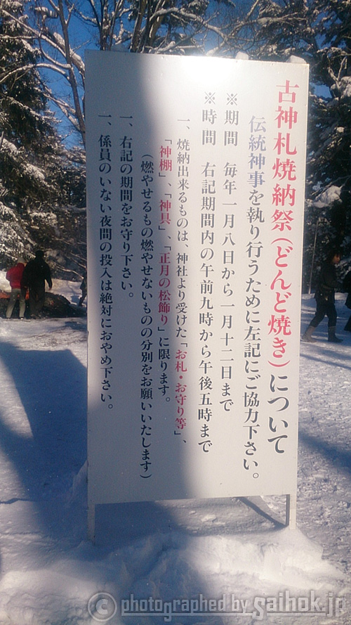 2016年の北海道旭川のどんど焼きは上川神社が1月8日~1月12日でした。