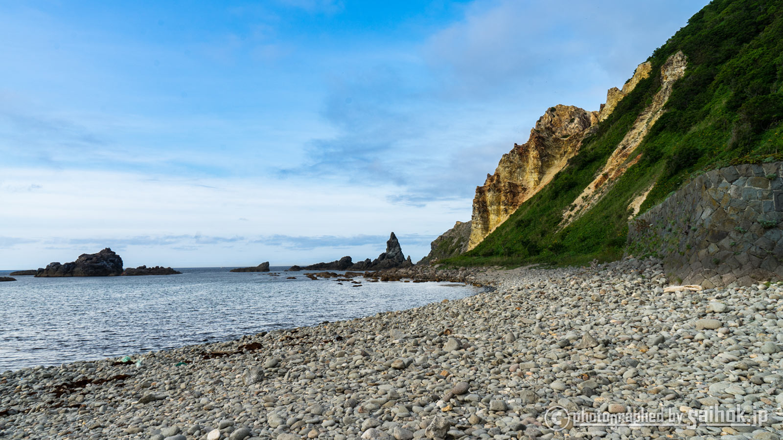 海岸といっても、砂浜が広がっているわけではなく、ごろごろとした岩が転がっている場所です。この島武意海岸は、右と左で景色がまったく異なるのも面白い部分です。もちろん右にも左にも、積丹半島一帯の特徴である「奇岩」をたくさん見つけることができます。