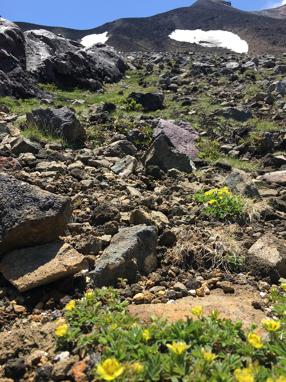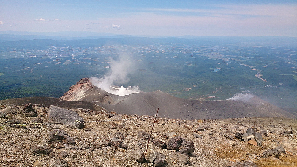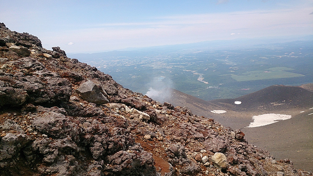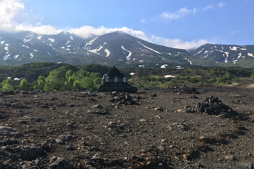 こちらは十勝岳は活火山のため登山をしている横には常に火山が活動的に動いていて煙があがっている状況なんです。