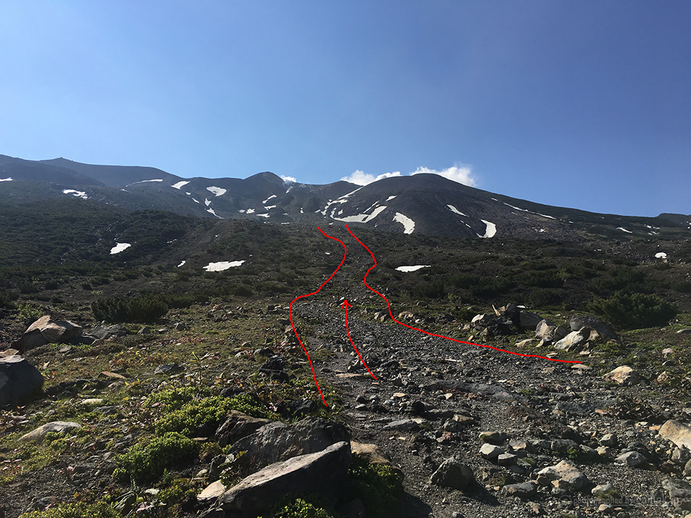 ん?2,077m?!と驚かれる方もいらっしゃると思いますが、十勝岳の登山ルートはいくつかあり、望岳台、吹上温泉、十勝岳温泉など比較的高い標高まで舗装道路が整備されているんです。なので、車で標高800m~1000mくらいまで登ってそこから登山をするので、夏は初めての方でも一般登山者でも簡単に登ることができるんです。