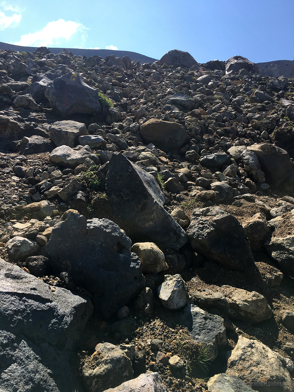この十勝岳(とかちだけ)は、火山なので比較的全てが火山灰というのか砂か岩場かという形で、森林の中を通っていくわけではないので、比較的靴や服が汚れないんです。またかなり登山道が整備されているので、迷いにくく初めての方でも安心して登れる山だと思います。もちろん登山の装備はしっかりとしておく必要があります。ただ、一つ注意をしておいたほうがいいのが、「虫」。虫除けスプレーなどを事前に用意しておくことをオススメします。