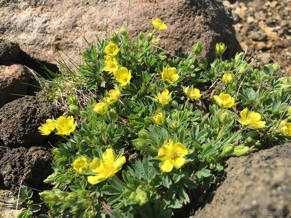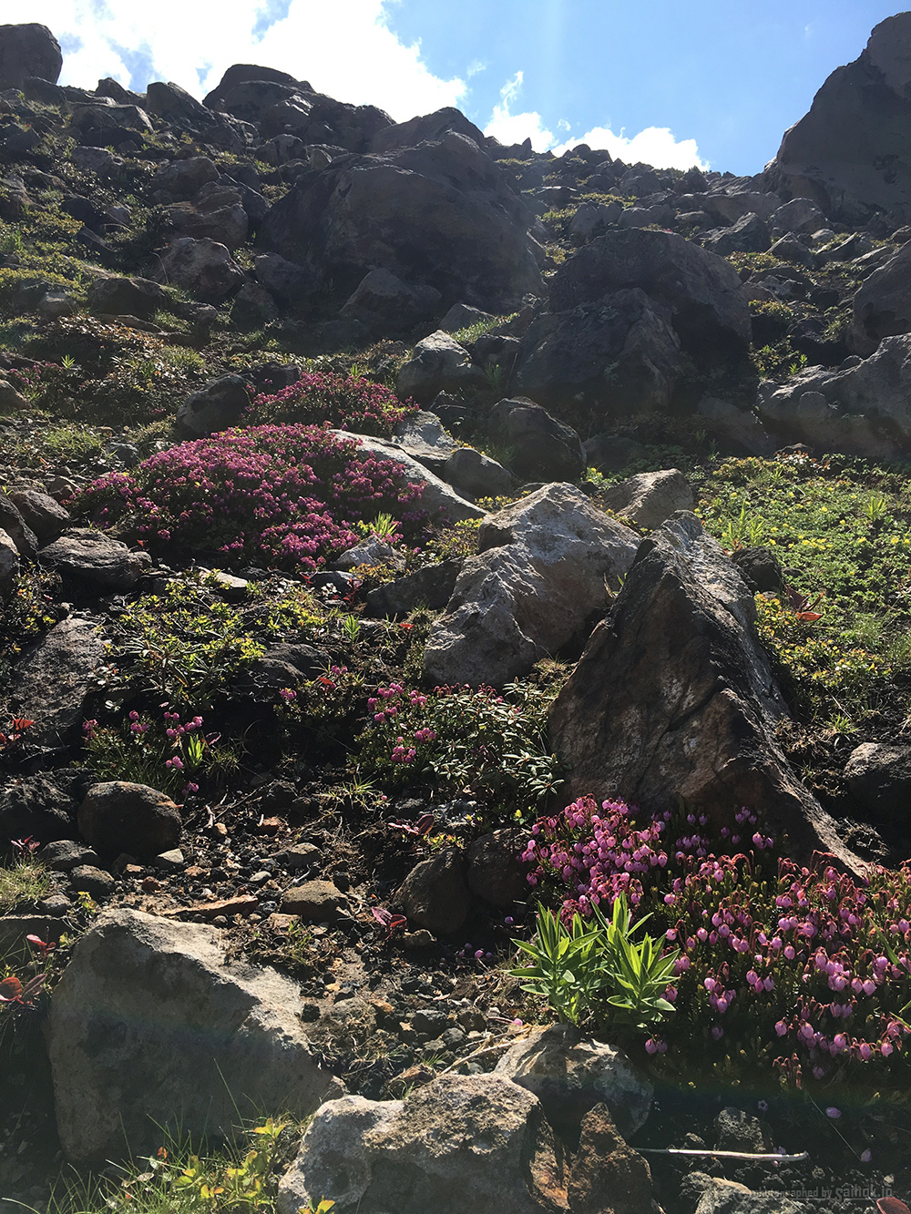 運動不足の私には頂上までいくのは、もう諦めようかと思うほど辛くなってきたのですが、少しのぼると、こんな高山植物が!