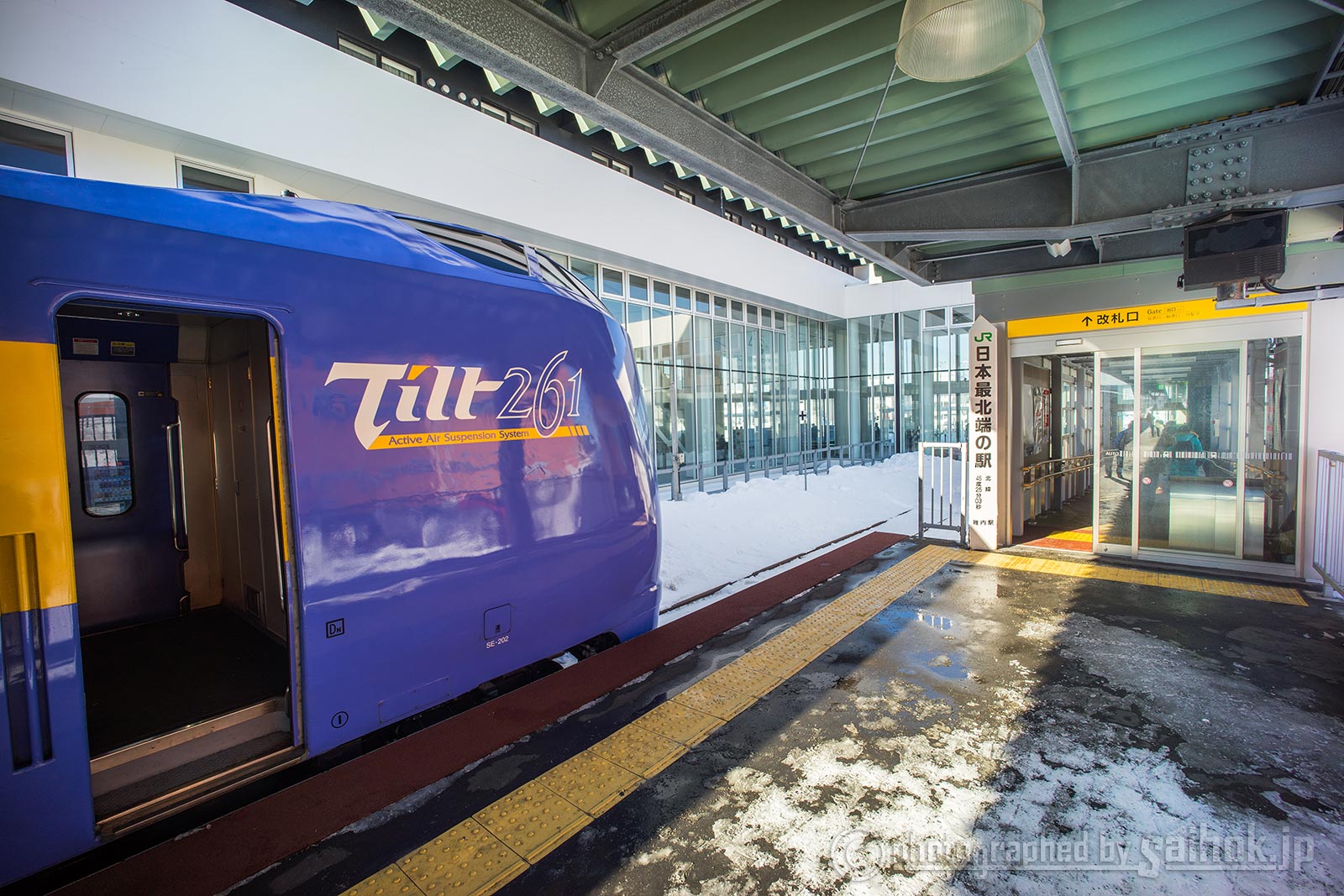 「最北端の線路」と書かれた看板が、駅構内から見ることができました。日本中にはり巡らされている線路網の最南端の駅まで、距離にして3200km以上。気が遠くなるような距離です。日本の最北端の駅と言っても、ターミナル駅のように広大な敷地があるわけではありませんでした。ホームは1つ。線路も1つ。駅に発着する列車の数も、特急合わせて上下8本ずつ。最北の駅は、決して賑わっているわけではありません。静かにその終着と旅立ちを待ち構えているかのようでした。