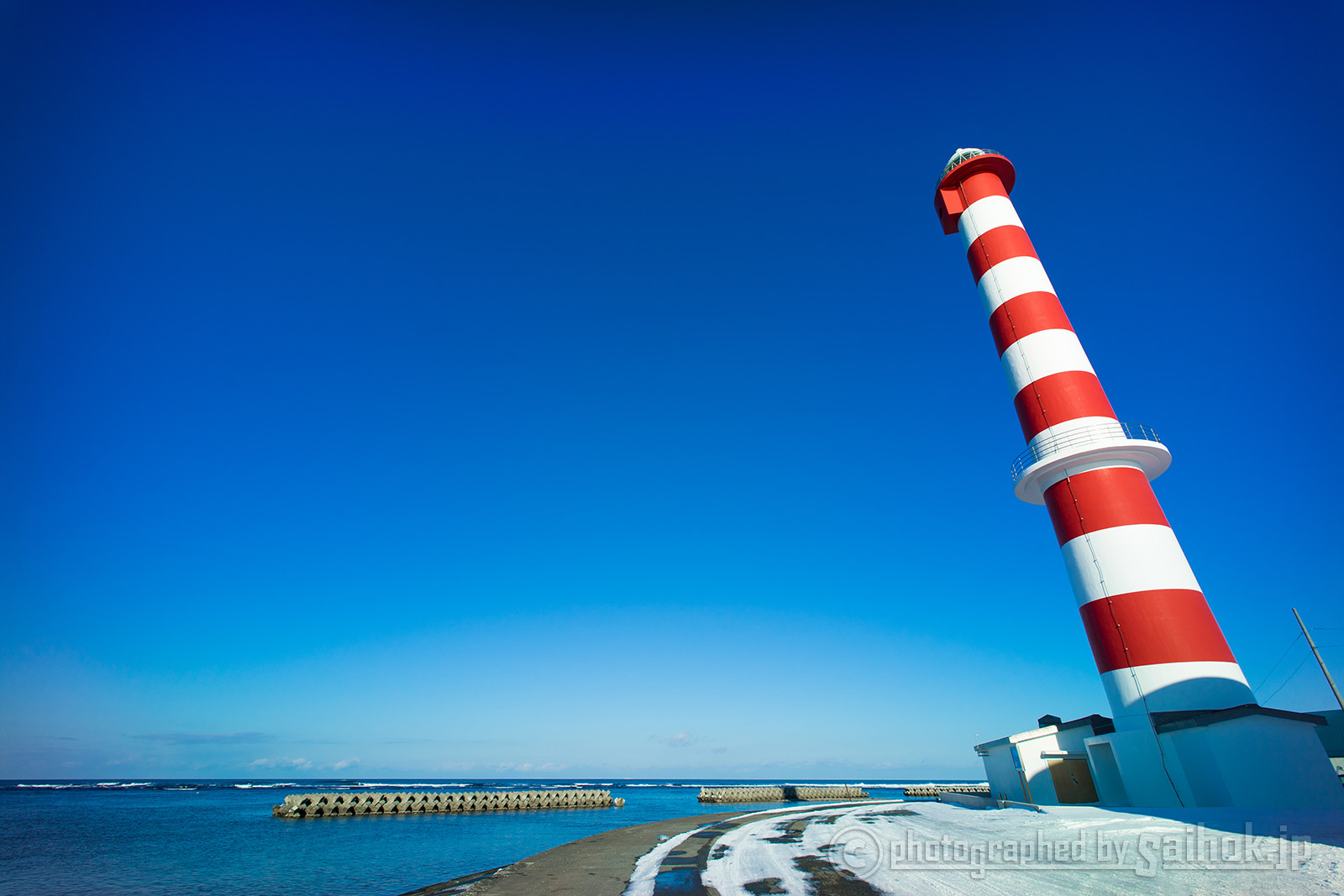 まず1つ目は、真っ青な空に突き抜けるしましま模様の灯台が特徴のノシャップ岬です。漢字表記では「野寒布岬」となりますが、北海道の根室に「納沙布岬=のさっぷみさき」があり、漢字表記だと読み間違えをすることが多く、カナ表記することが多いようです。日の出や夕焼けを見るのにも最高なロケーションですね。晴れた日には利尻富士(利尻島)も見ることができます。近くには土産店や稚内市立ノシャップ寒流水族館、青少年科学館があり、ちょっとしたスポットにもなっています。