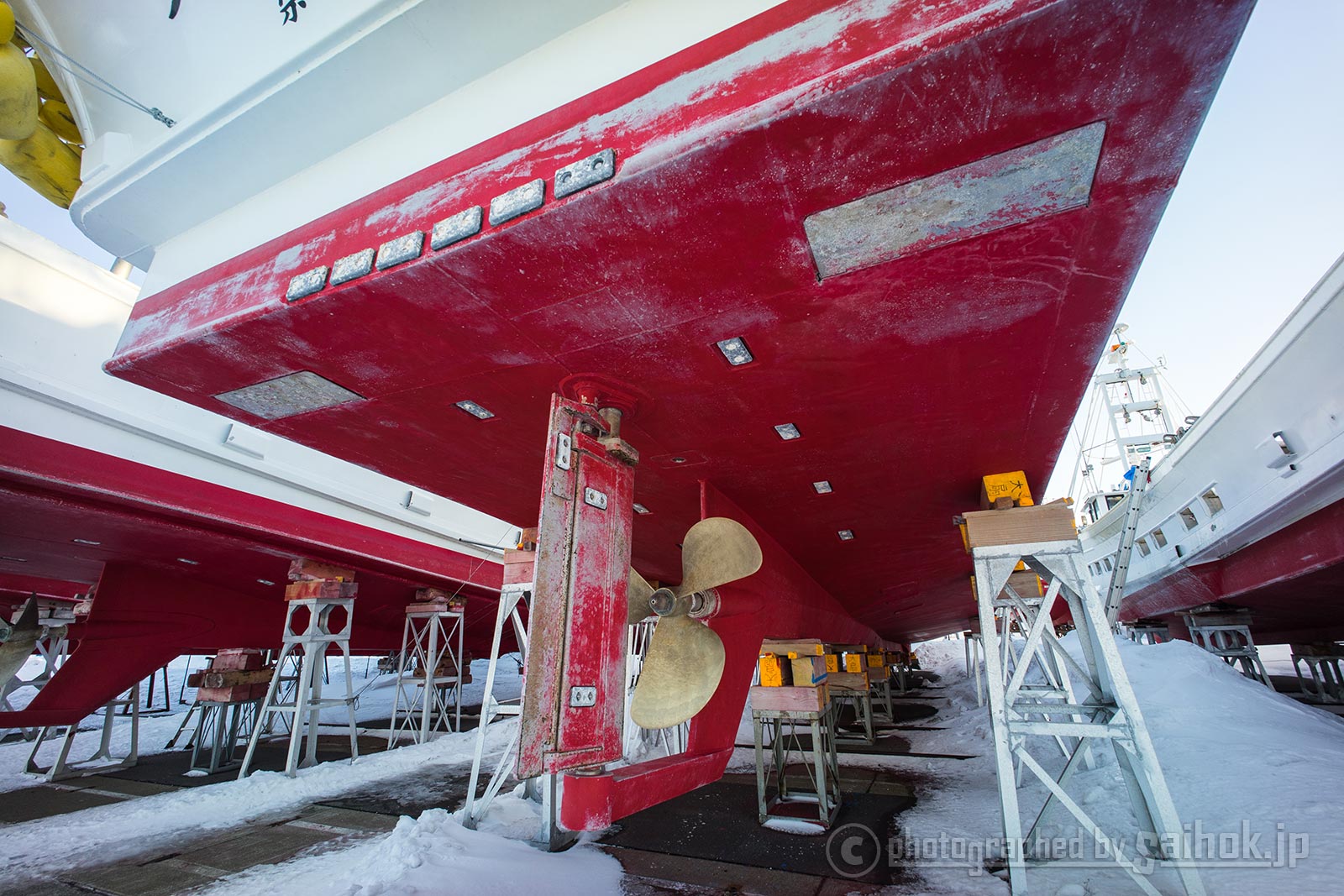 今はこうやってお腹を見せてお休みしていますが、きっとシーズンには力強いエンジン音を響かせて勇ましく漁に出ていくのでしょう。