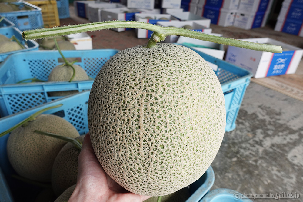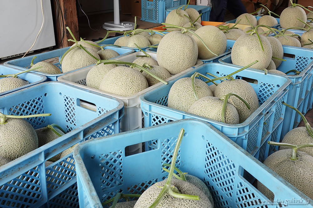 ご挨拶をして、まず初めに作業場にお邪魔すると、そこには大量のメロンが!