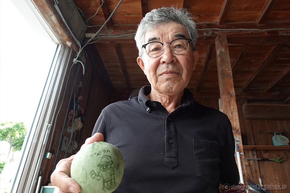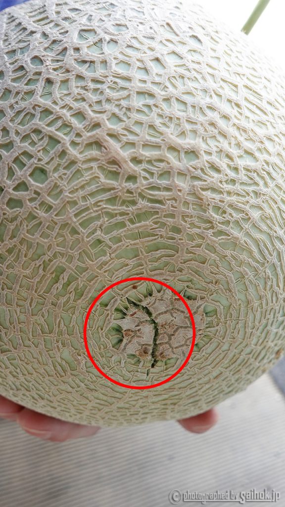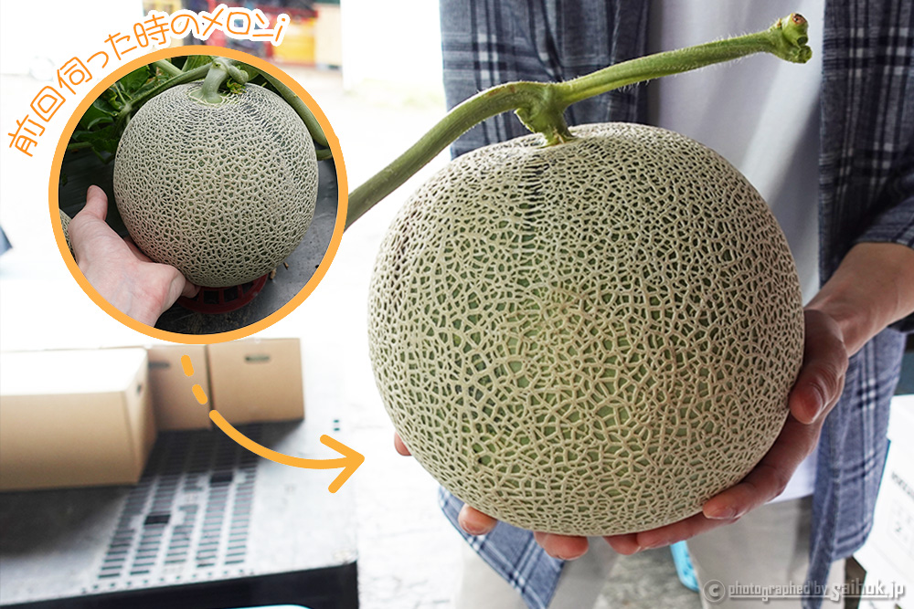 そんなカットしたメロンを惚れ惚れ見ていると、石川さんが自慢気に間引いた小さなメロンを見せてくれました。