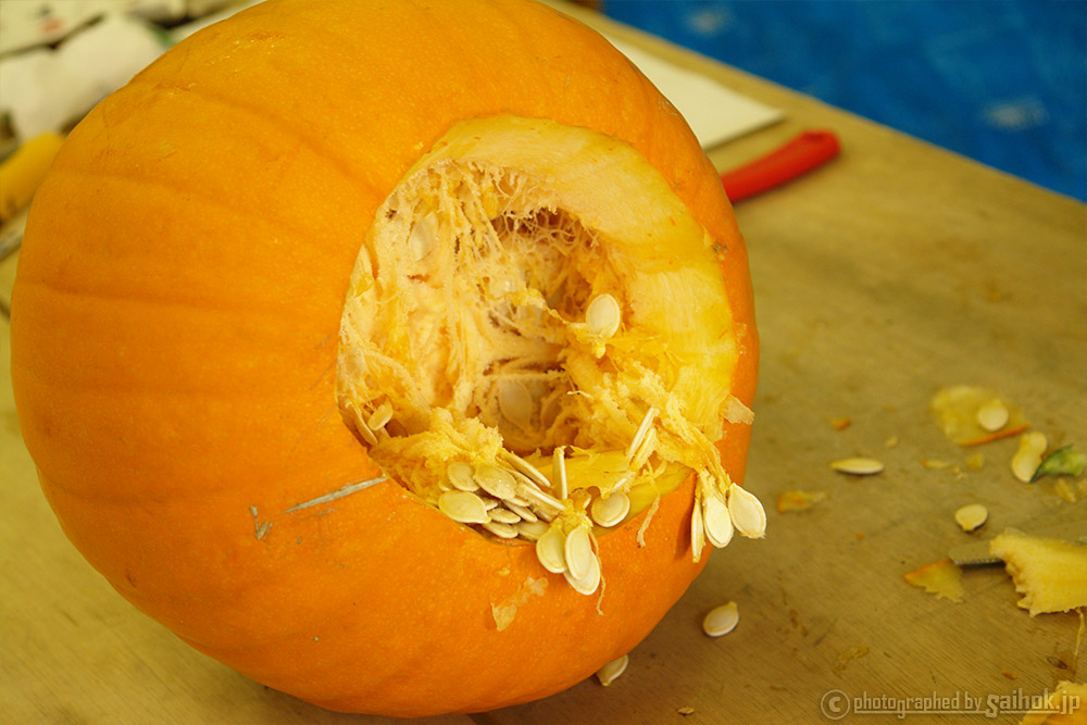 そうする事で、中身がよく乾燥され長持ちするハロウィンかぼちゃとなります。