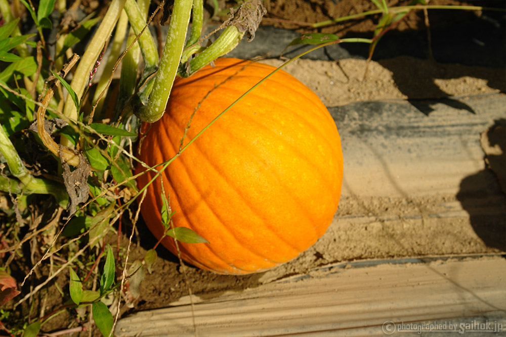 どのかぼちゃも綺麗なオレンジ色に色づいてますね。農家さんに聞くともうそろそろ収穫間近ですよ~♪とのことでした。