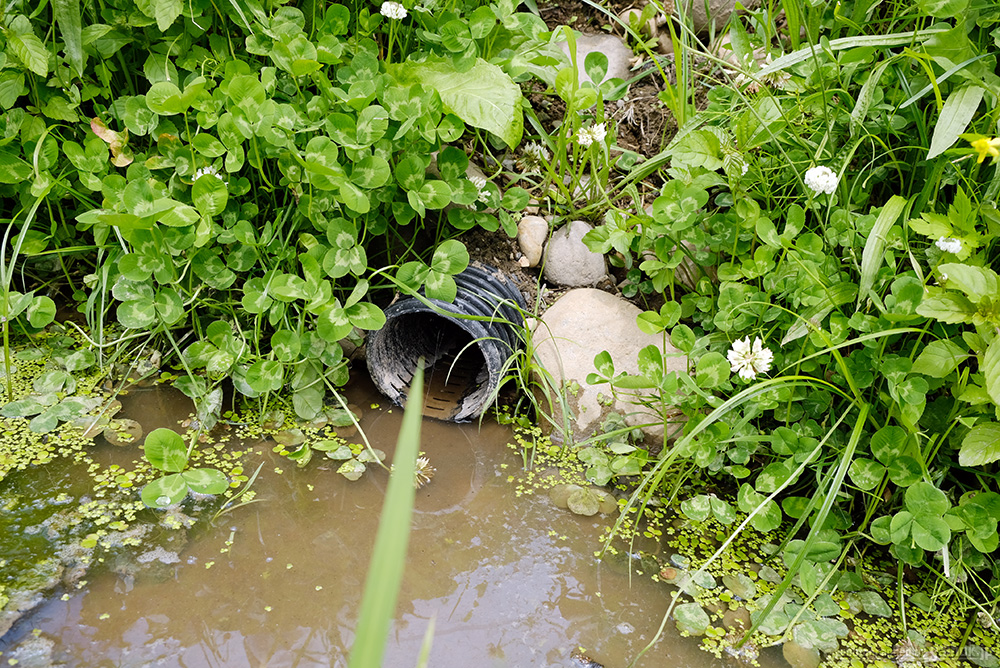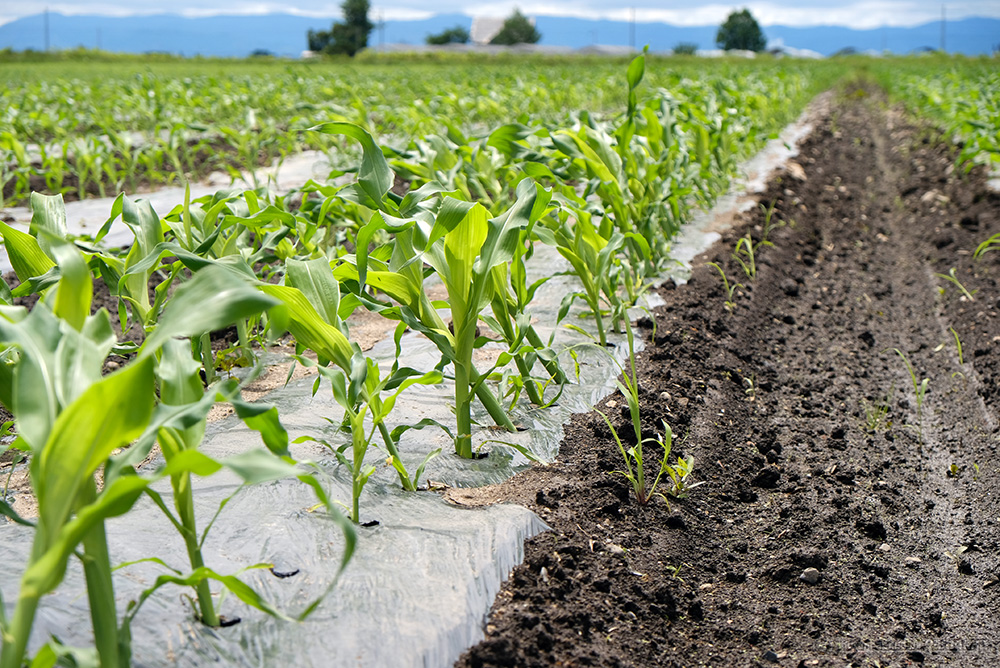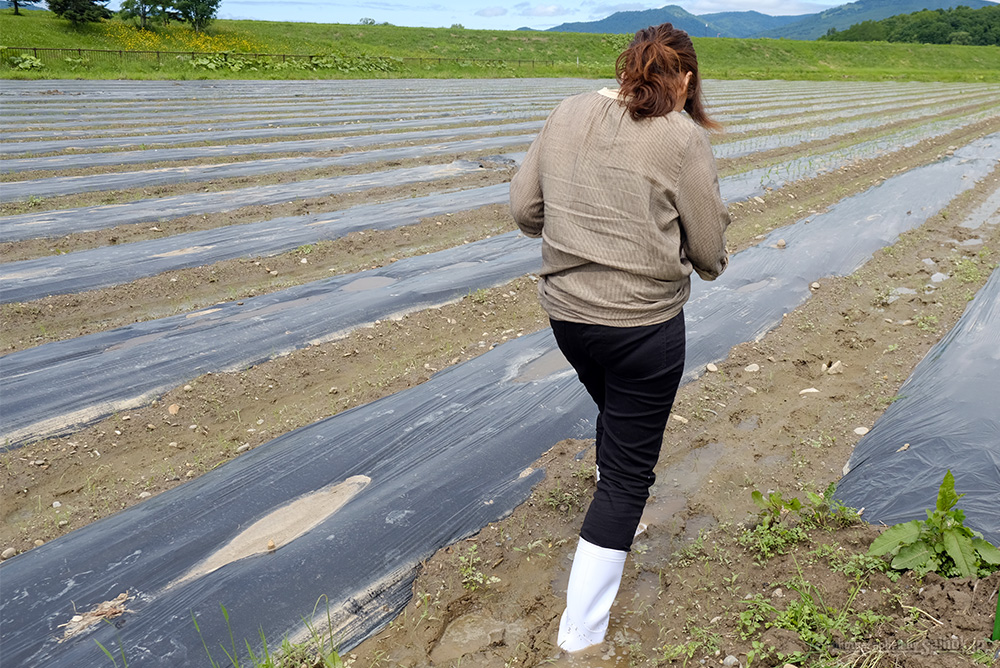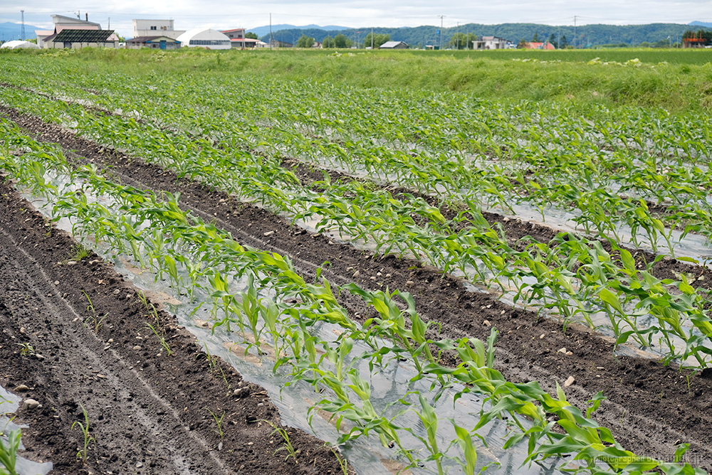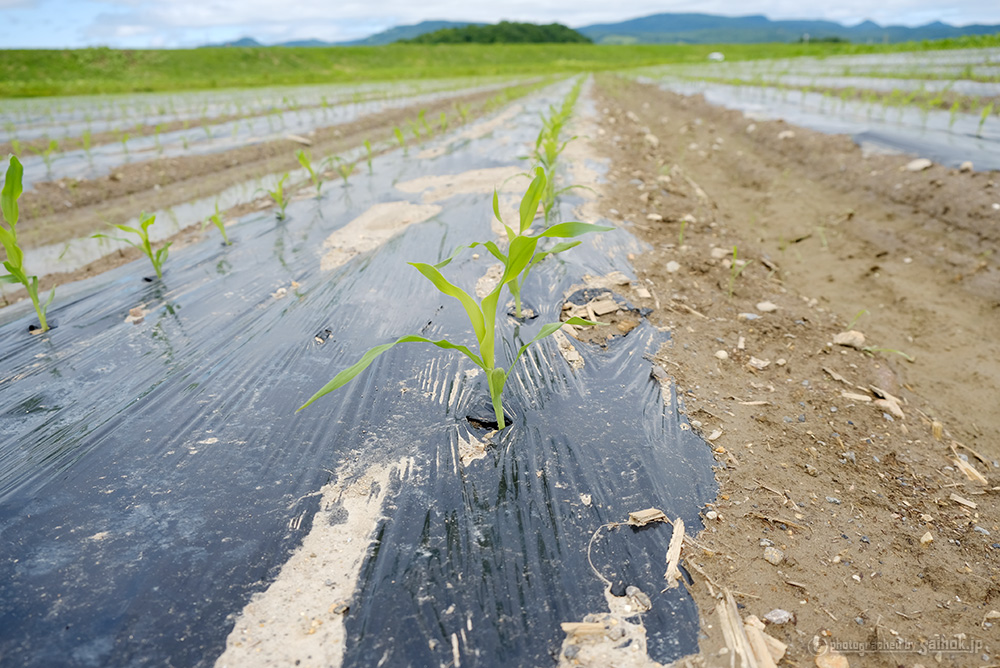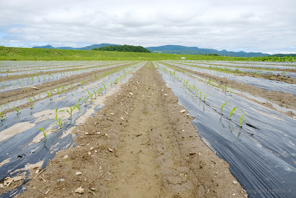 そして、今年は春の時点から、雨が多いと菅野さんは言っておりました。そのため、農家の菅野さんは実は対策をうっていたのです。土の水分をできる限り抜くために、地中に配管を入れて水を流すようにしておりました。下記のような黒い管を入れております。また、水分を吸水してくれる「木のくず」をちりばめて、その上から土をかぶせているんです。その上にとうもろこしが植えられているという状態です。そのため、この大雨の影響で近郊の農家さんも影響を受けておりますが、菅野さんのとうもろこしは、その対策のおかげもあって、とうもろこしは無事のようです。このような努力のたまもので、毎年美味しいとうもろこしが食べられるのですね。これから、雨がひどくならなければ、また順調に育っていく見込みでございます。