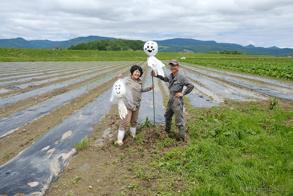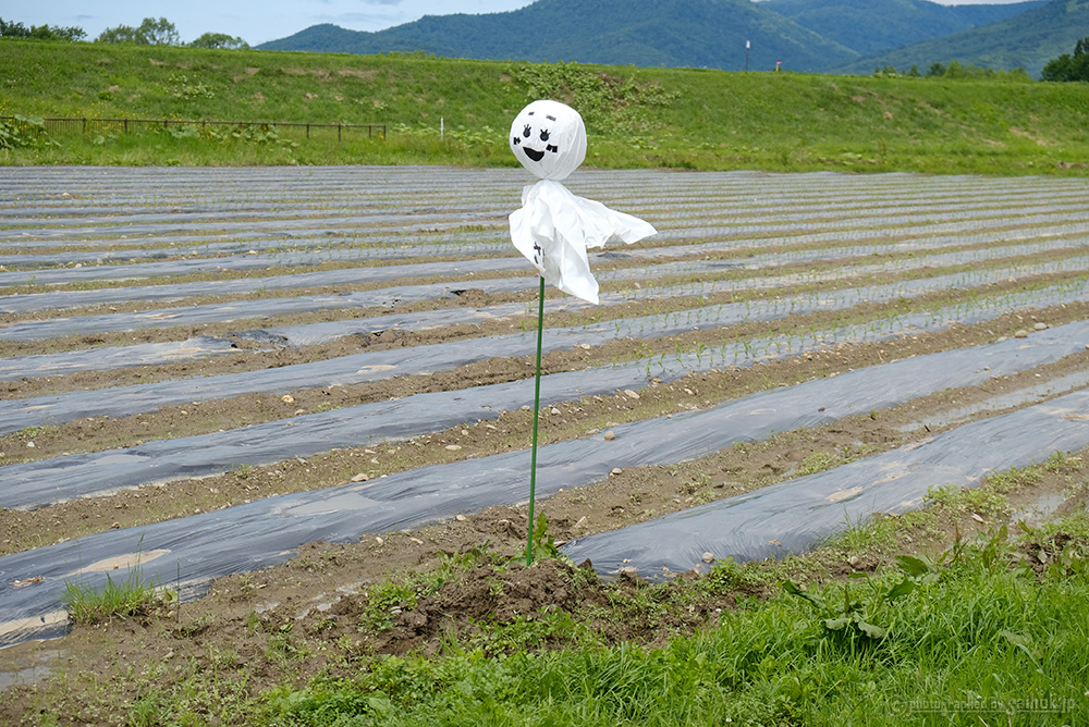 そして、私たちスタッフでも、少しだけ農家さんのお手伝いをしてまいりました。2018年はこちらです!今年は少し遅くなってしまっていますが、スタッフ一同、昨日の雨の影響を受けたとうもろこしを見て、心をこめて作ったのできっと効果があると信じてます(笑)菅野さんと一緒に今年も設置いたしました!これから、このてるてる坊主が、畑を見守ります。どうか美味しいとうもろこしが育ちますように。そして作業中を見守るてるてる坊主も昨年同様に設置完了です。この二つが、今年も美味しいとうもろこしになるよう見守りますので、皆様、とうもろこしの到着まで、もうしばらくお待ちいただければと思います。また、近況をお伝えいたしますね。