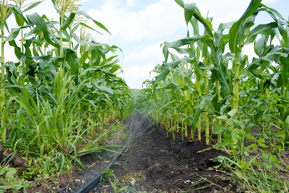 ここ数日の北海道は、雨が一切降らず、30℃を超える日が連続しています。皆さんのお住まいの地域では、30℃を超える日は当たり前かもしれませんが、この北海道当麻では、こんなに暑い日が続くことは珍しいんです。とうもろこしは、井戸の水のシャワーを浴びているところでした。とうもろこしの間の土のところを見ていただくと、黒いチューブがあるのがわかりますでしょうか。そこには穴が開いていて、そこからお水がシャワーのように出ております。