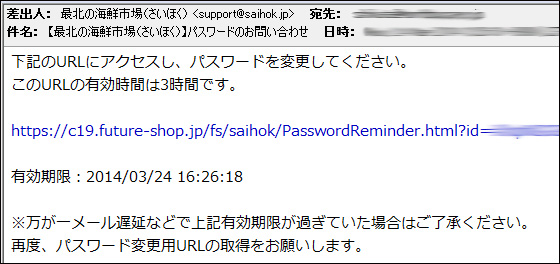 2.パスワード変更用ページのURLを記載したメールを送信します。